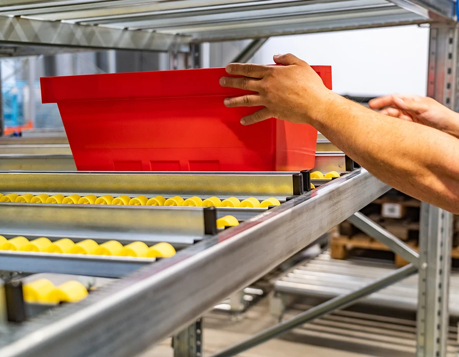 Gravitacione police sa kutijama se odlično uklapa kao srednja skladišna metoda između ručnog i automatskog skladištenja.