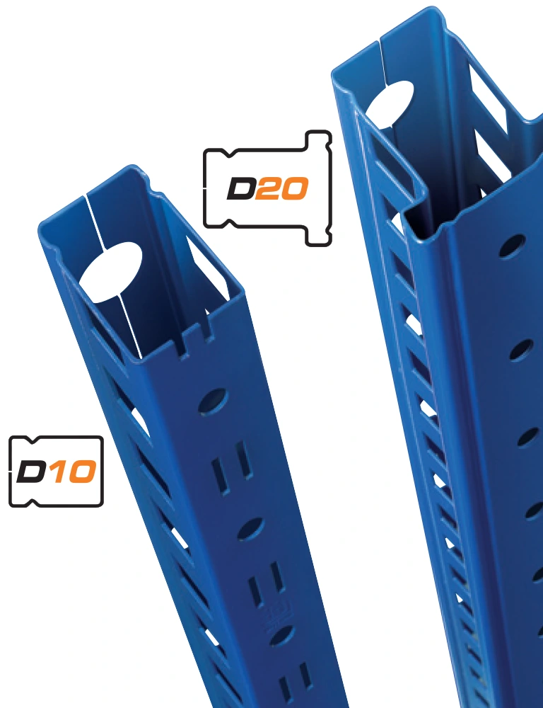 D30 i D40 modelima se razlikuje debljine nogu, a pružaju idealno rešenje u slučaju zahteva velike opterećenosti i/ili je zahtev visina koja se može povećati. Zahvaljujući nogama od šest puta presavijenog materijala dijagonale i priključne šipke se mogu lako fiksirati, što će u značajnoj meri doprineti povećanju nosivosti kao i mogućnosti za izgradnju galerijskih sistema polica.